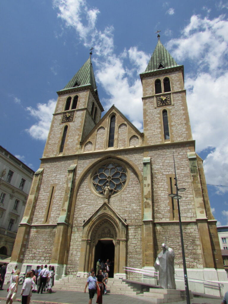 La calle Ferhadija es una de las arterias comerciales de la ciudad. En ella se encuentra la catedral católica del corazón de Jesús, la iglesia católica más grande de Bosnia. Muy cerca verás la Iglesia Ortodoxa y una sinagoga sefardí, testimonio de la diversidad religiosa.