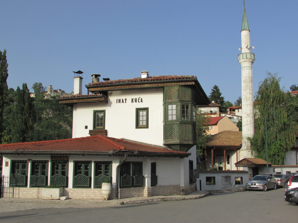 Frente al ayuntamiento encontramos la Inat Kuća (Casa de la Rencilla). Es una casa histórica de Sarajevo que fue trasladada piedra a piedra al otro lado del río Miljacka para evitar su demolición y permitir la construcción de la Alcaldía de Sarajevo (Vijećnica) en su emplazamiento original. Su dueño, Benderija, aceptó ceder su casa con la condición de recibir una bolsa de monedas de oro y que la casa fuera reconstruida idéntica en la orilla opuesta, un acto de desafío que le valió el nombre de “casa del desdén”. Actualmente en su interior puedes encontrar un restaurante tradicional bosnio.