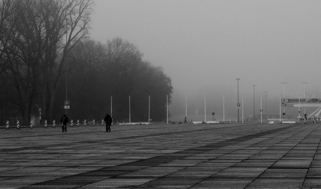 La Große Straße (Gran Calle) es una enorme avenida construida durante la era nazi (1930s) como parte del complejo monumental del Reichsparteitagsgelände (Terreno de los Congresos del Partido del Reich) en Nuremberg. Fue diseñada como eje central para los congresos del Partido Nazi (NSDAP) y es un ejemplo claro de la arquitectura monumental fascista. Los adoquines de la Große Straße están colocados con una precisión extrema: todos alineados con la vista hacia el castillo medieval, una manera de unir simbólicamente el pasado imperial alemán con el régimen nazi.